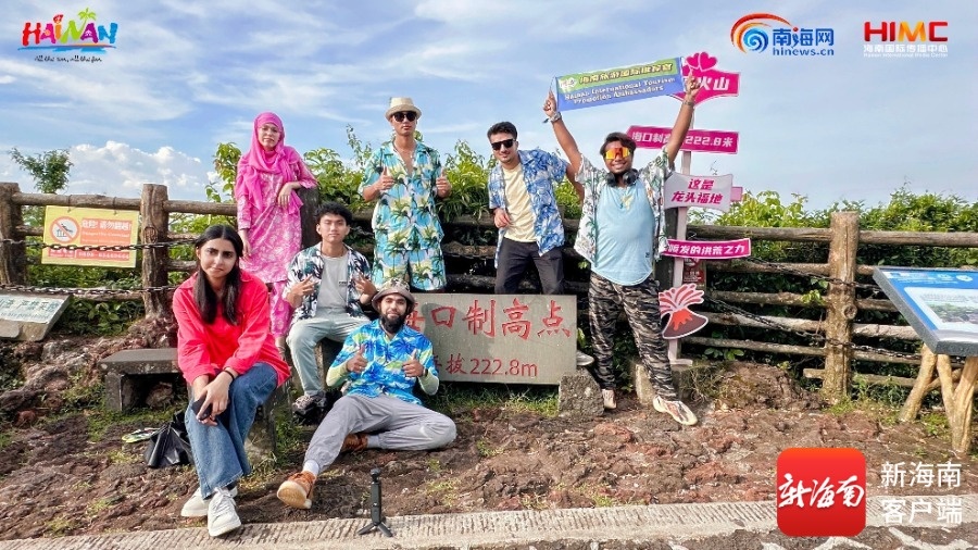 海南旅游国际推荐官和外国留学生们打卡火山口。主办方供图