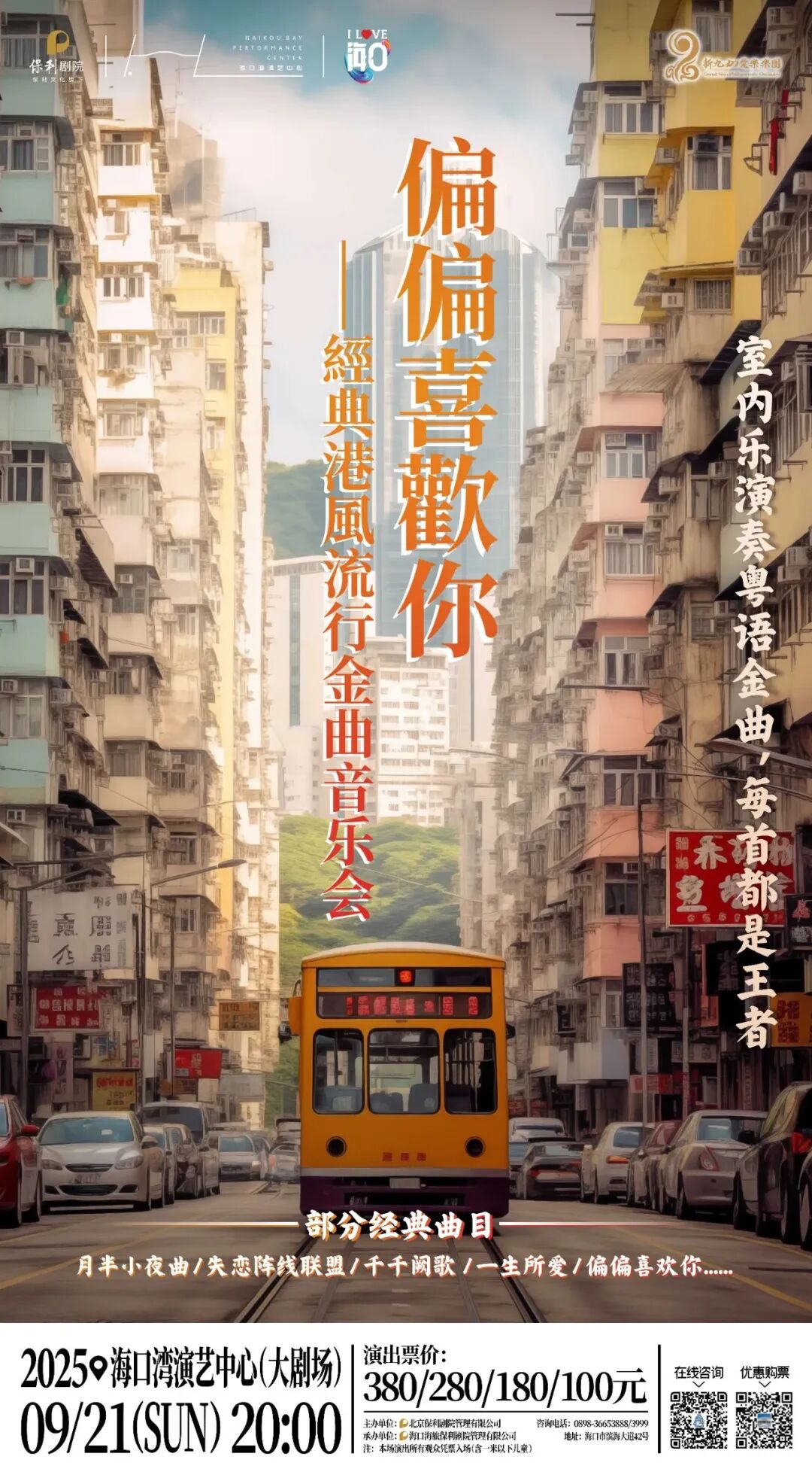 本次音乐会由新九州爱乐乐团倾情演绎,将精选《偏偏喜欢你》《上海滩》《一剪梅》《千千阙歌》等数十首经典港风流行金曲,涵盖张国荣、陈百强、梅艳芳等传奇歌手的代表作。从深情慢歌到动感旋律,每一首都承载着一代人的青春记忆,让观众在熟悉的旋律中,重回港乐黄金时代。