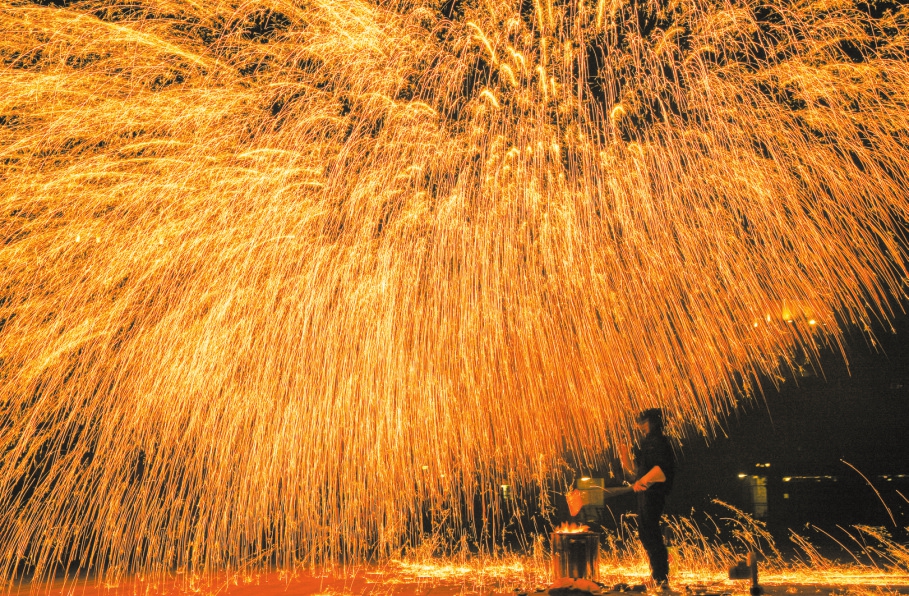 今年初,一场别开生面的非遗打铁花表演在海口观澜湖电影公社内上演,众多市民游客慕名前去观看。