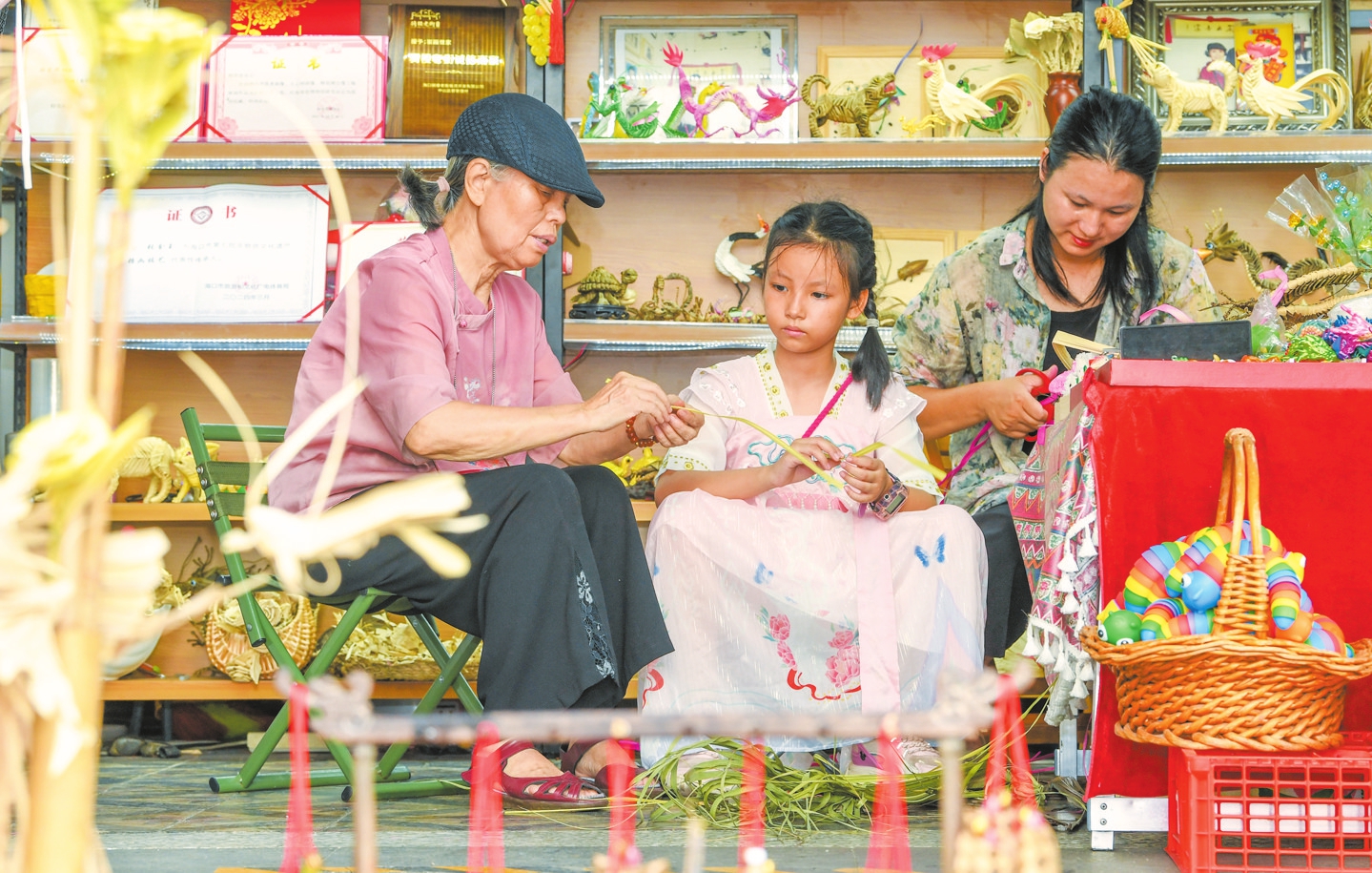 “孩子学做草编时特别专注,完成作品后很开心。”带着儿子来参与活动的市民吴女士说,“活动不仅锻炼了孩子的动手能力,还让他感受到了海南非遗的魅力,也学到不少历史文化知识,特别有意义。我们还打算买些非遗文创产品带回去,让家里也多些‘文化味儿’。”