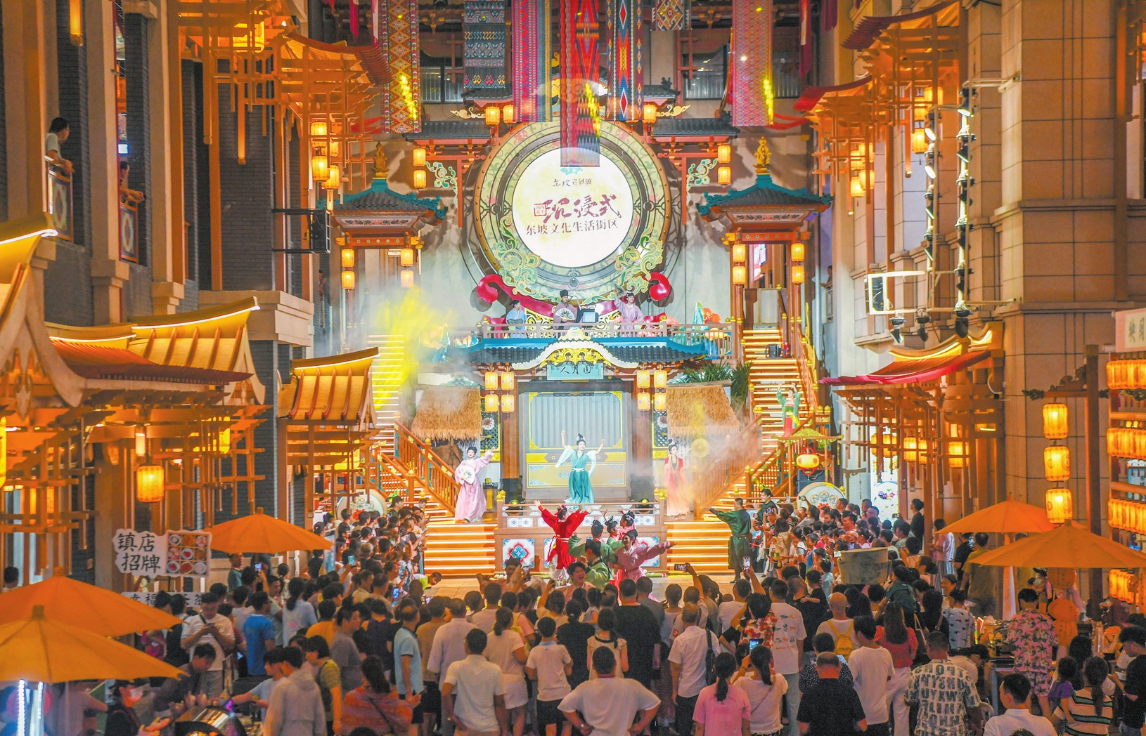 8月29日,七夕节当晚,FUNBAY自在湾街区灯火璀璨,“非遗无界青春同行”2025年海南国际旅游岛欢乐节非遗巡游活动在此启幕。