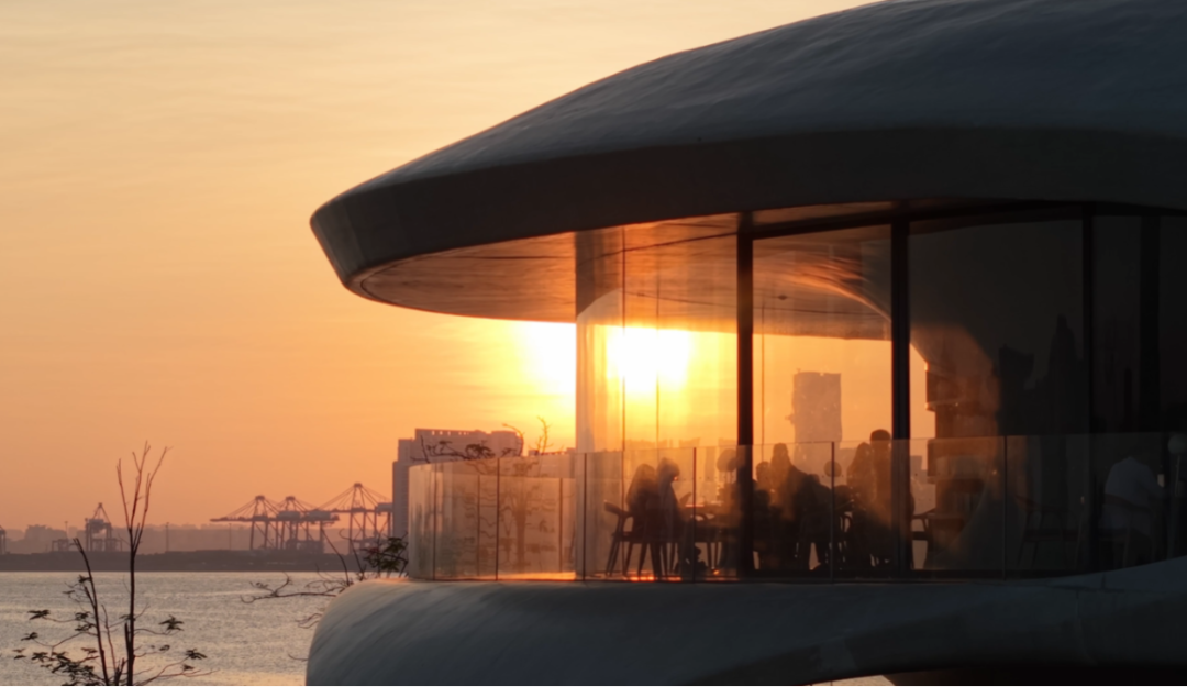 沿岸餐厅外场区域是最佳观景位,点一杯特调饮品与晚霞“干杯”。