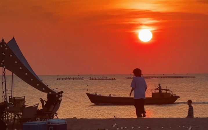 赤脚踩在细软沙滩上,听着浪涛轻语,看渔船点缀在金粉色的海面上,随手一拍都是治愈大片。