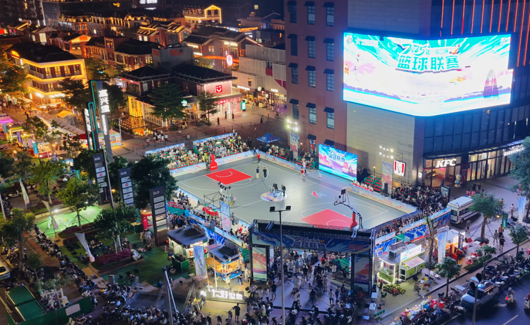 “海口杯”篮球联赛突破传统赛事场地限制,将比赛现场搬进华彩·海口湾广场、高兴里潮酷文化街区等城市核心商圈。这一举措不仅打破了传统观赛模式的局限,更将体育赛事完美融入市民日常休闲生活。街头篮球的热烈氛围与球迷的强烈归属感相互交融,形成了独具海口特色的赛事“烟火气”,极大提升了赛事的感染力和参与度。