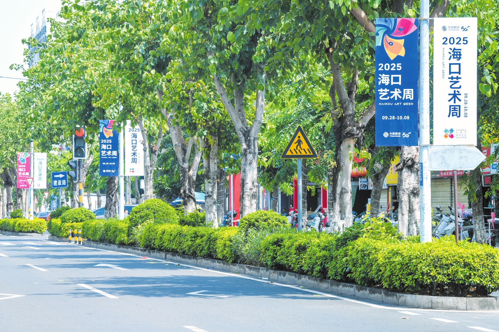 9月20日,金盘路上悬挂了2025海口艺术周道旗,道旗画面设计精美,融入了艺术周主题元素,以鲜明的色彩吸引着过往市民的目光,为城市增添了浓郁的艺术气息。 本报记者 苏弼坤 摄