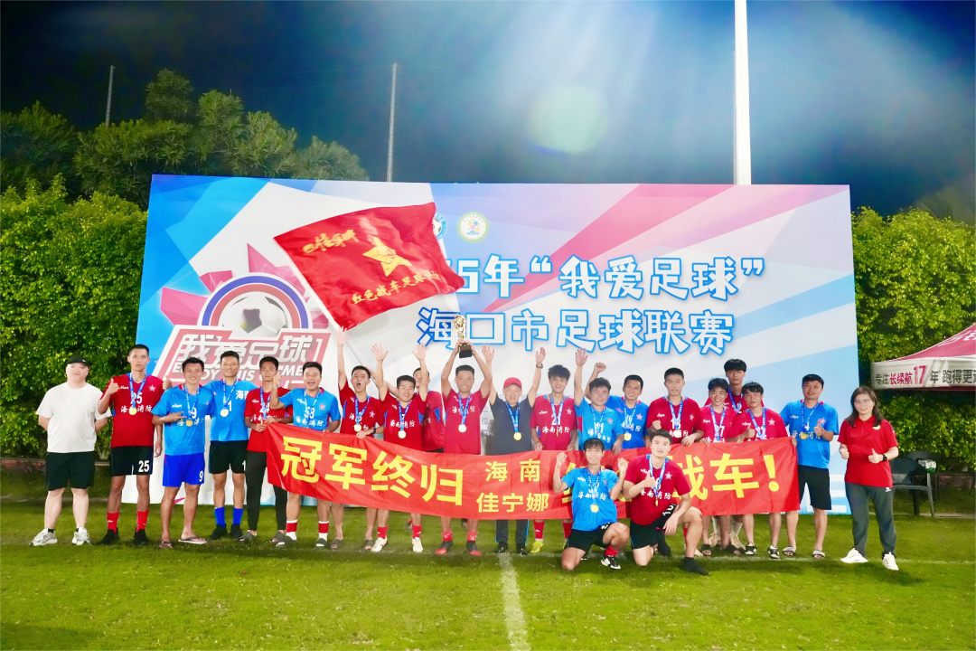 9月21日晚,在海口世纪公园足球场热烈的气氛中,2025年“我爱足球”海口市足球联赛圆满落下帷幕。本届赛事吸引了16支本土强队的积极参与,经过六轮激烈角逐,海南佳宁娜红色战车以全胜战绩强势摘得冠军!