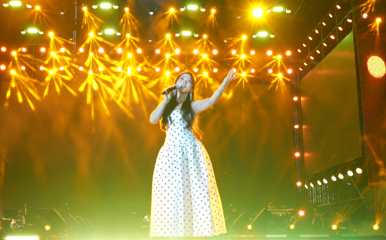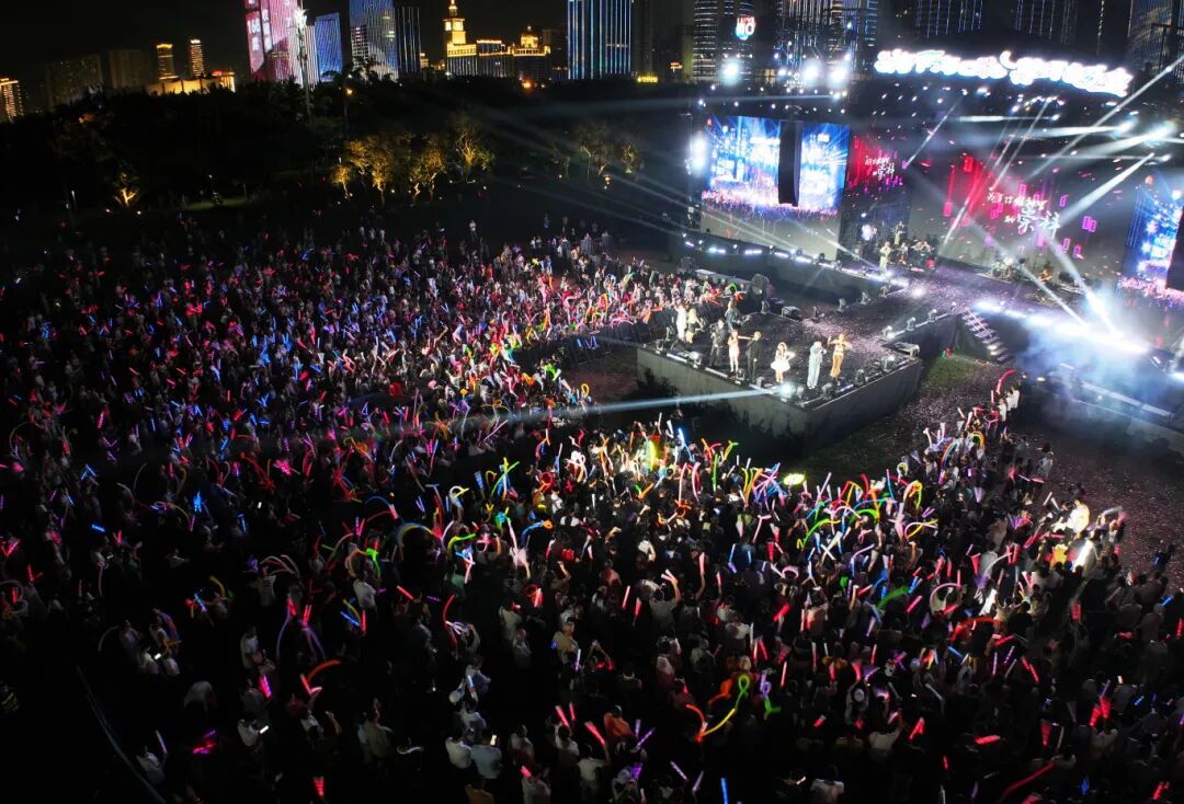 夜幕降临,万绿园的草坪上霓虹闪烁,歌声回荡。歌手们接连献上多首脍炙人口的歌曲,让现场氛围迅速升温。