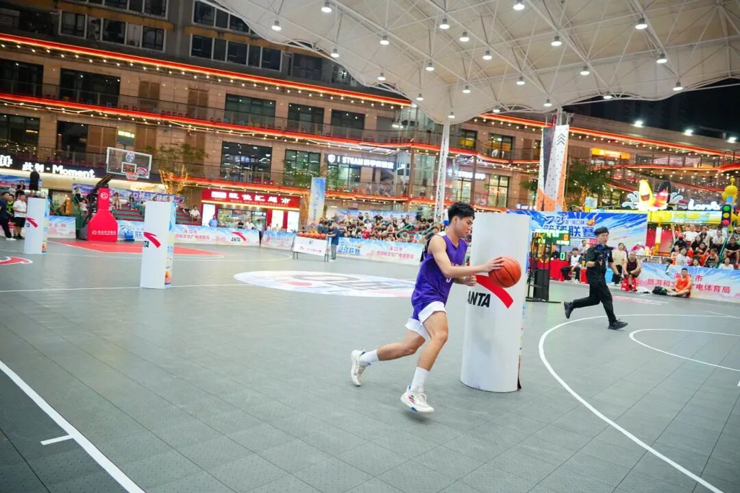 当晚决赛之战开始之前,现场气氛已因两场比赛被彻底点燃。技巧挑战赛中,龙华区世兴地基队的高中淳以17秒28拔得头筹;三分球大赛中,龙华区海南华侨中学队的施国鹏在32秒47时间内进球7个,以神准投射引爆全场欢呼,将气氛推至最高潮。