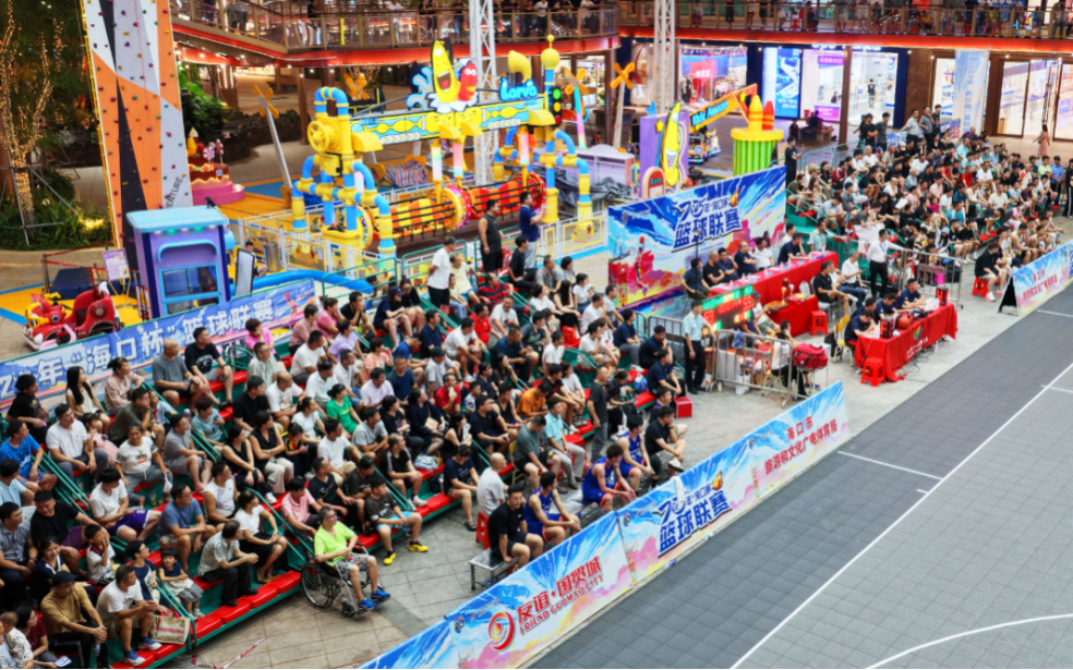 本届“海口杯”篮球联赛的一大亮点,是深入推进体育与商业的有机融合。赛事走进友谊·国贸城、友谊·南海城、高兴里潮酷文化街区、华彩·海口湾广场等海口核心商圈,将篮球的活力注入城市消费场景,既推广了篮球文化,也为商圈带来显著人流与消费增长。据友谊·国贸城相关负责人介绍,总决赛期间,多家餐厅排起长队,零售与休闲场馆的营业额也实现明显提升。