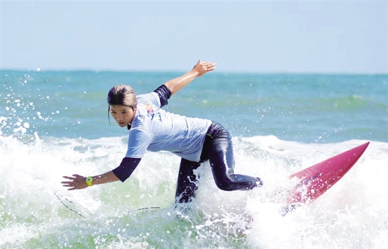 海南冲浪选手王静微在比赛中。 赛事组委会供图