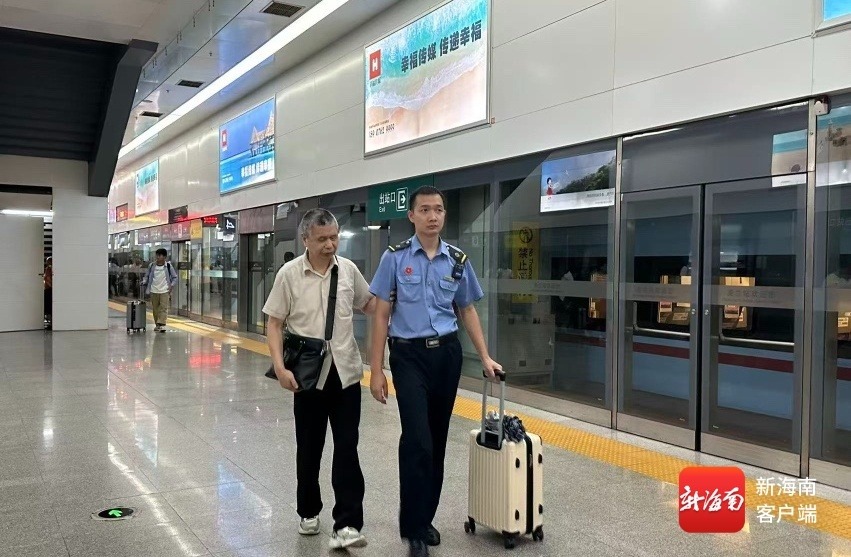 “同志,我和老伴走散了!”10月14日,美兰站候车区,一位胸前挂着残疾军人证的老爷爷焦急求助。原来,老两口在换乘时走散了,爷爷按指引到达高铁站,老伴却误滞留机场。