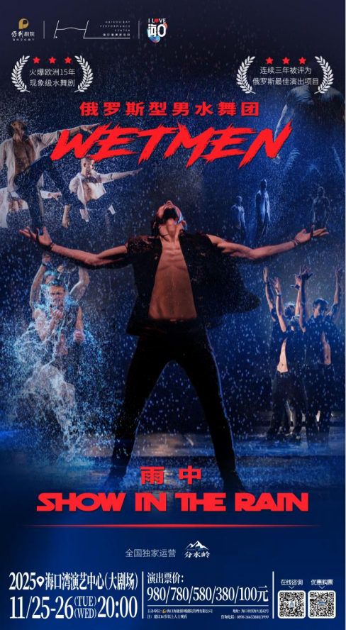 《雨中》的故事围绕感受、体验和爱来探讨人与人之间微妙的关系,以“追寻幸福”为主线,穿插幽默桥段与人生哲思,艺术爆发力和情感张力通过音乐、灯光等特效的加持迸发而出。而本场演出的主角“WetMen”团队被公认为是全俄最硬核的现代舞团体之一,在编舞大师操刀下,将街舞、古典舞、霹雳舞与体操技巧无缝融合,既有激情热舞,也有柔情双人舞,更有“反串”、灯管舞等惊喜,一场《雨中》将堪比一次“舞”林大会!