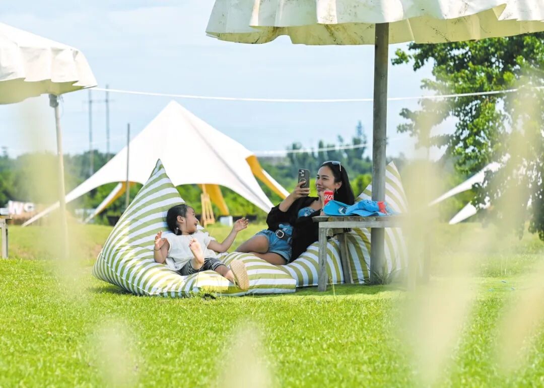 在美兰区灵山镇北姆堆公园,市民游客在盎然绿意中乐享假日慢生活。 记者 石中华 摄
