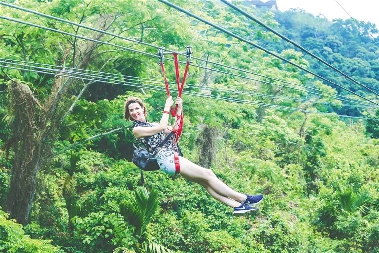 外国游客游览海南呀诺达雨林文化旅游区。武昊 摄