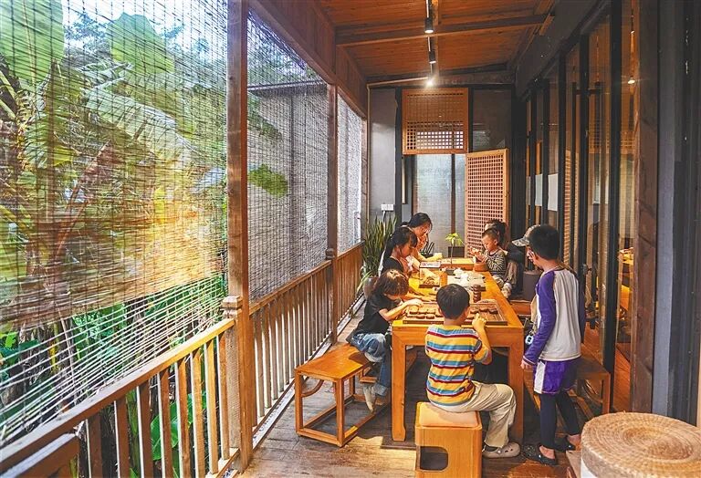 几名小朋友在民宿里下棋。海南日报全媒体记者 李天平 摄