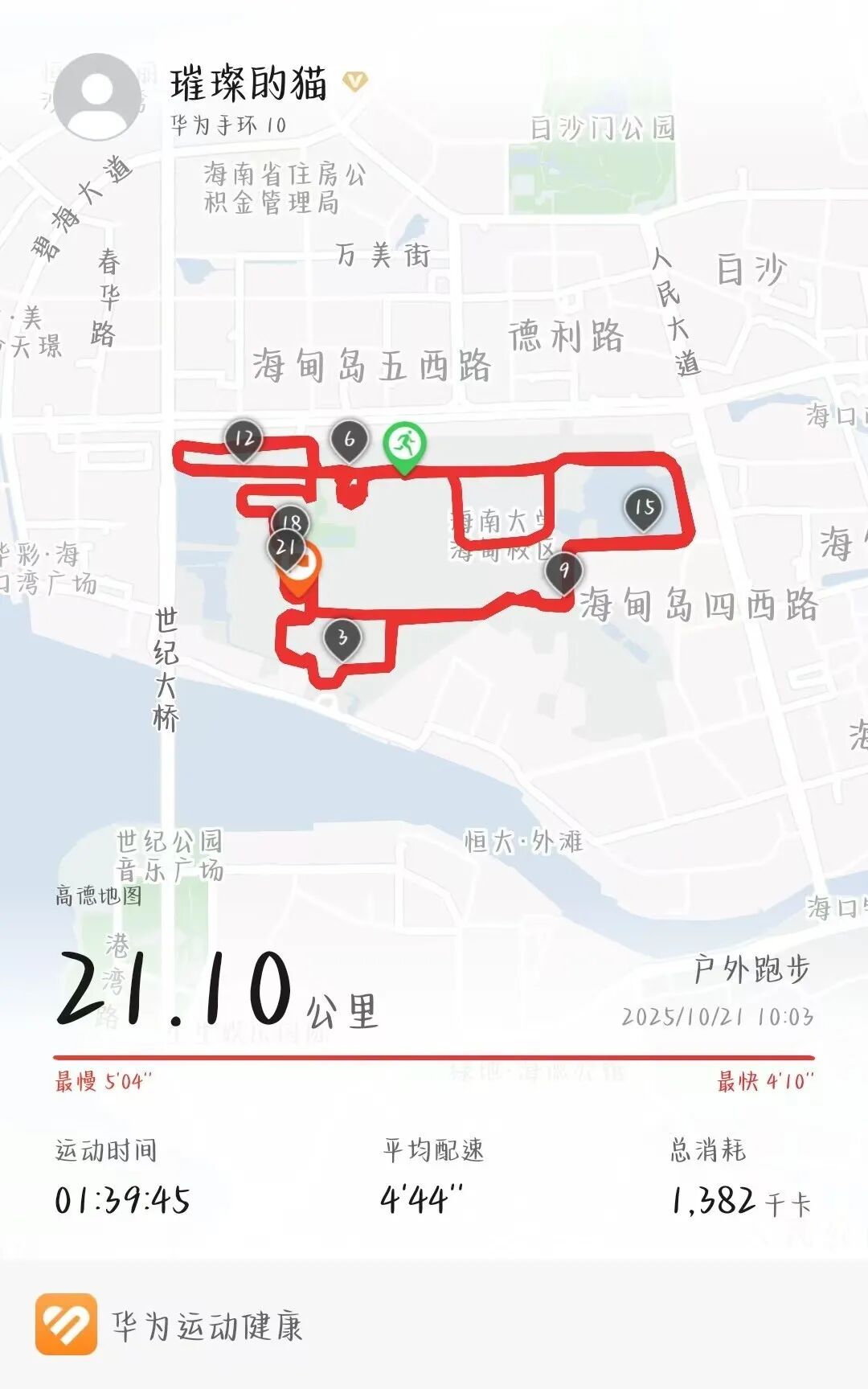 这是我人生中首次挑战半程马拉松,或许有体力的极限,或许有中途的犹豫,但我知道,那些在田径场跑过的晨昏、在一次次环校跑里积累的耐力、在椰风海韵与市井烟火中收获的温暖,都将成为我前行的底气。