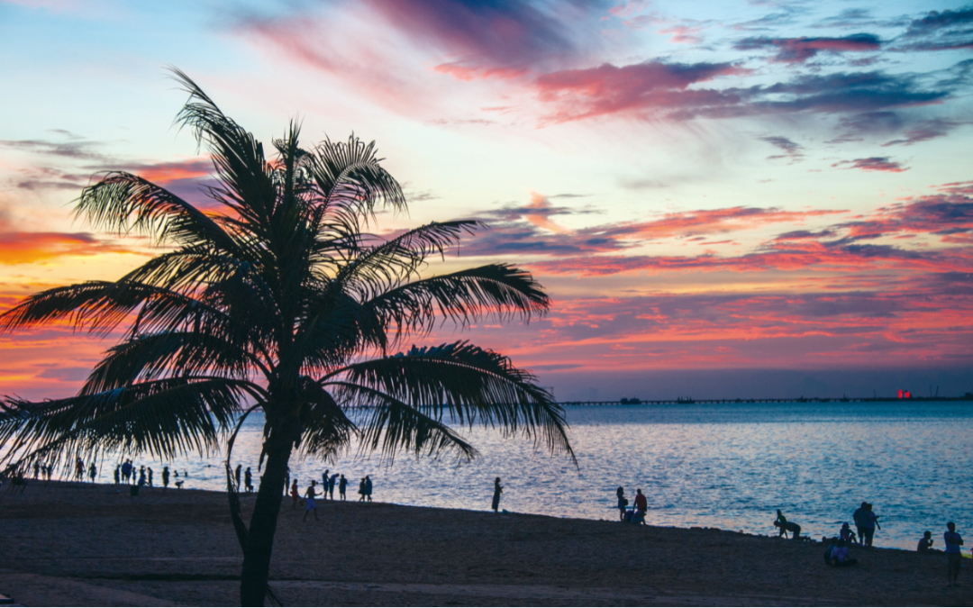 赏海上落日将天际染成玫瑰色
