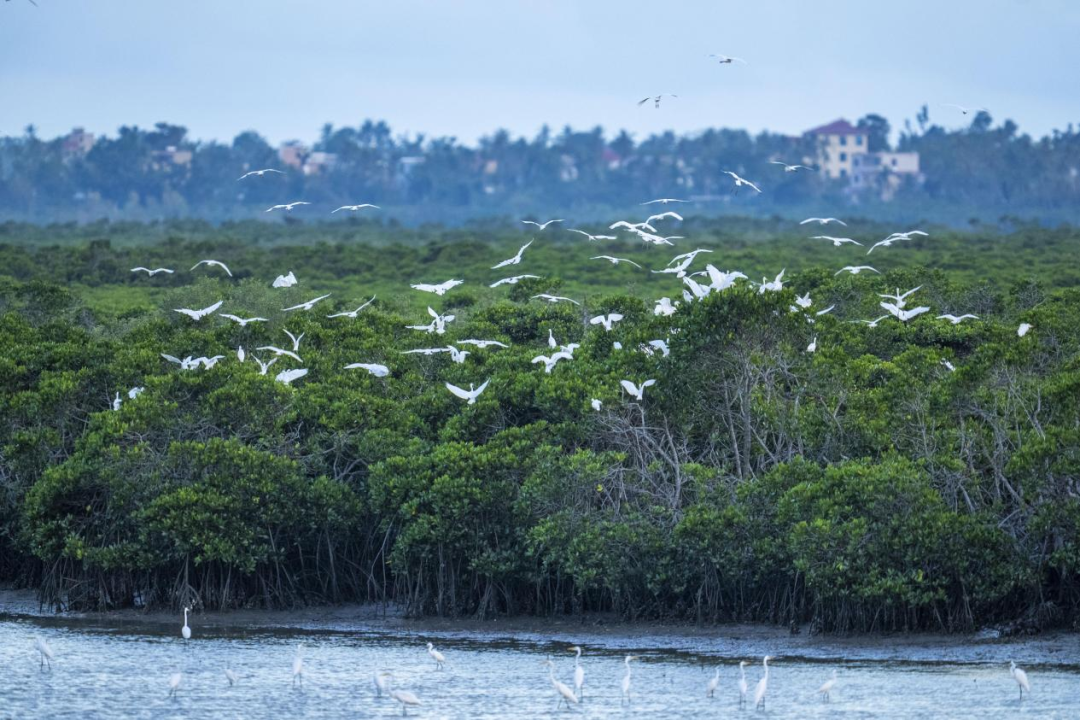 10月14日,栖息在海南东寨港国家级自然保护区的鹭鸟。海南日报李天平 摄