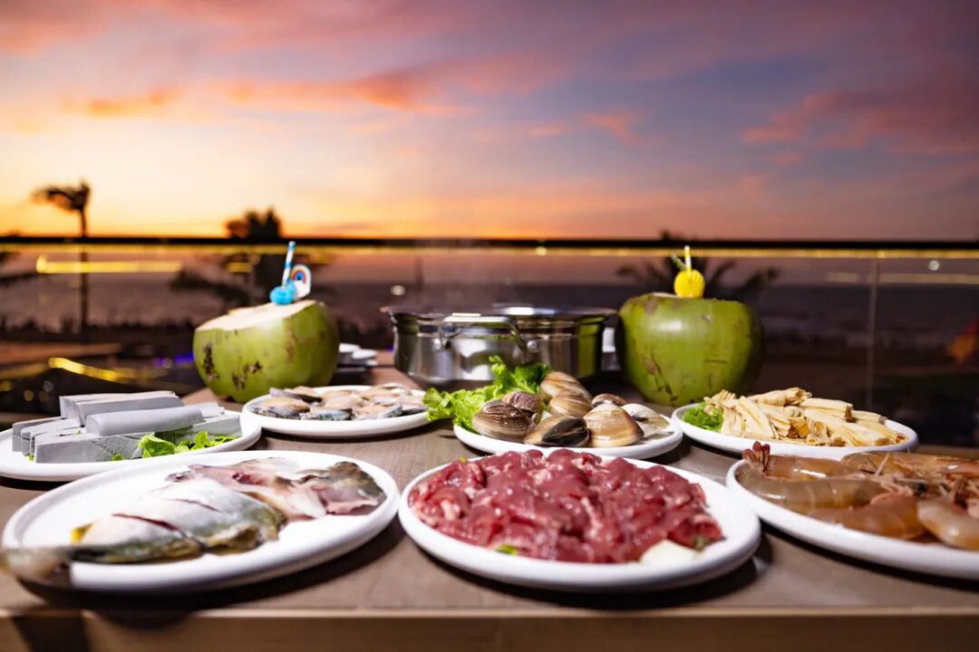 餐厅依海而建,共有两层楼,环境惬意,视野开阔无垠。尤其当天气晴好,二楼露台便成了观赏一线海景与落日的绝佳位置,眼前景致浪漫得宛如电影画面,温柔得让人屏息。