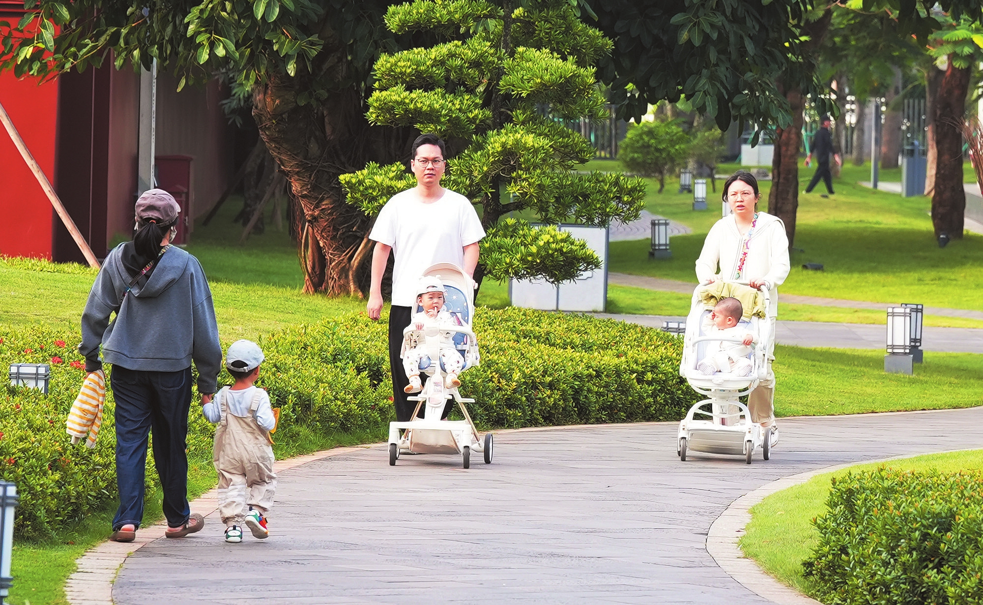 11月18日,海口海瑞文化公园依旧绿意盎然,成为冬日里市民“遛娃”的一处胜地。现场,市民或牵着孩子漫步,或轻推婴儿车散步,这份温馨的亲子时光与雅致的文化景观交织在一起,构成了一幅充满烟火气与温情的生活图景。