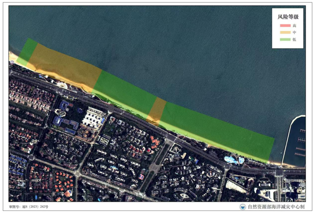 2.海口市西秀海滩海域离岸流风险等级分布图: