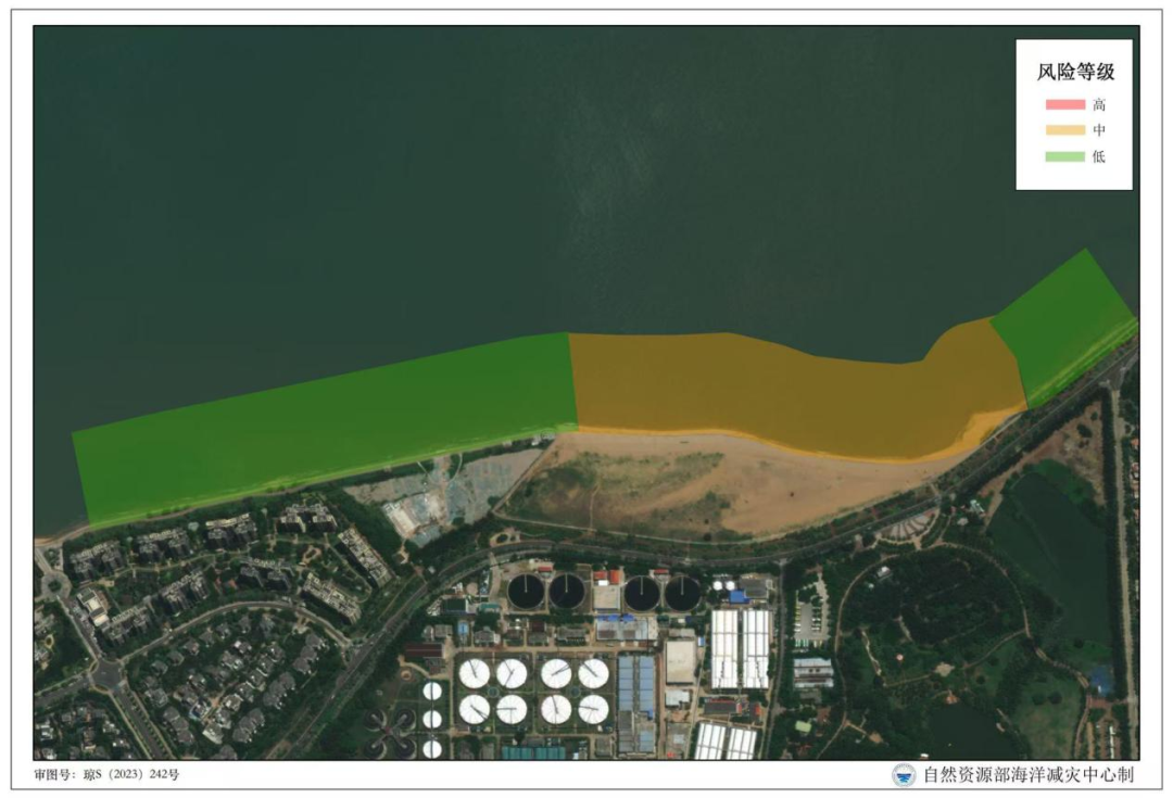 1.海口市假日海滩浴场离岸流风险等级分布图: