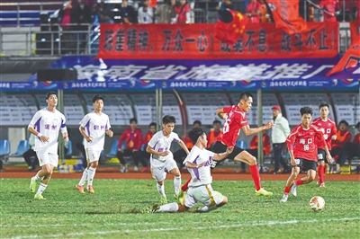 11月29日,“启航自贸港”第一届海南省城市足球联赛开幕式和揭幕战在海南体育职业技术学院举行,东道主海口队1:2负于儋州队。当日其他比赛中,三亚队3:0战胜陵水队,琼海队3:0战胜临高队,保亭队2:0战胜了五指山队。图为海口队与儋州队比赛现场。 文/海南日报全媒体记者 王黎刚 图/海南日报全媒体记者 封烁