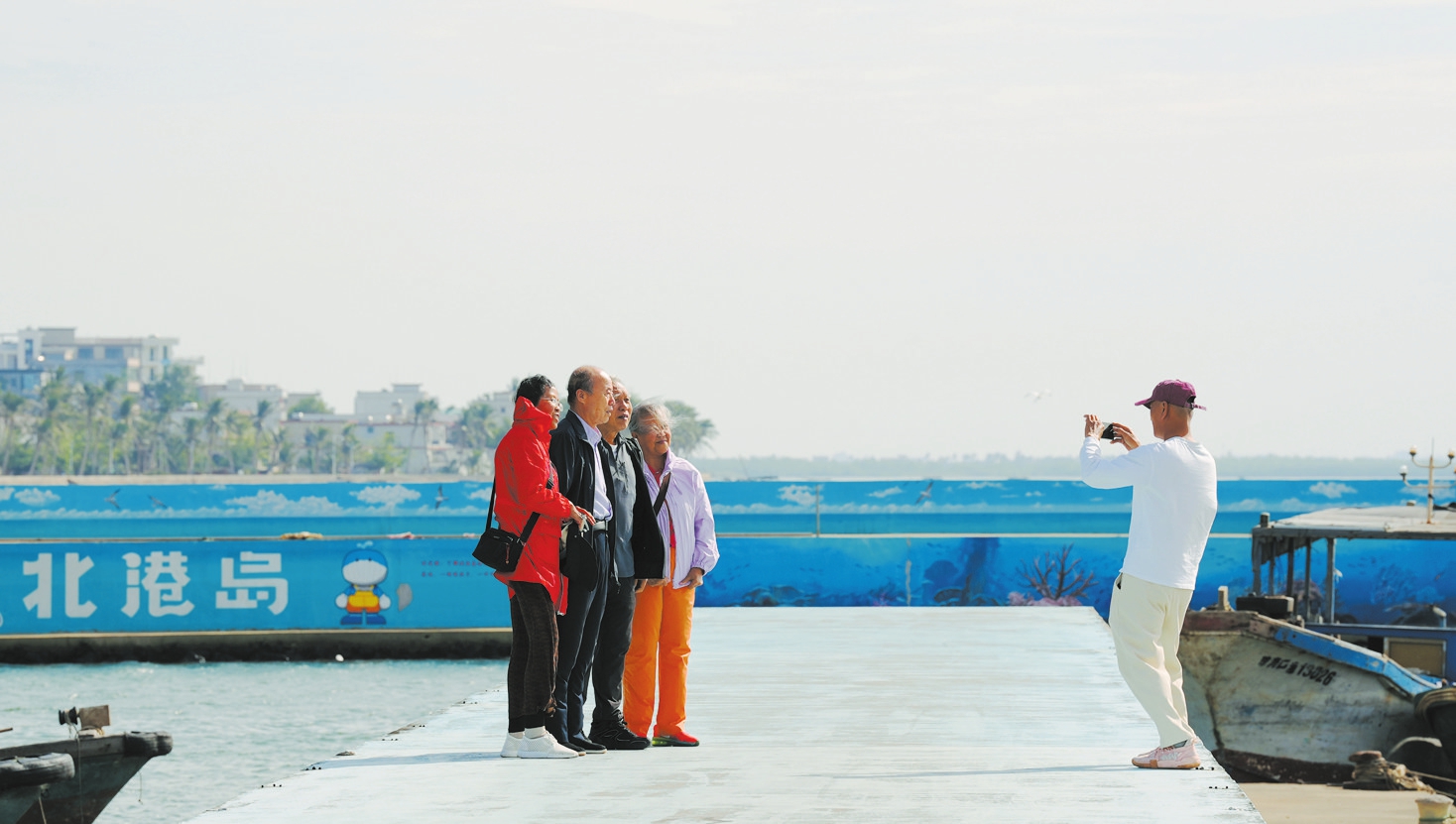 当前,海南岛迎来旅游旺季,各地游客纷纷前来游玩。图为11月22日,游客在海口北港岛海边拍照打卡,享受舒适气候与滨海美景。本报记者 杨忠凯 摄