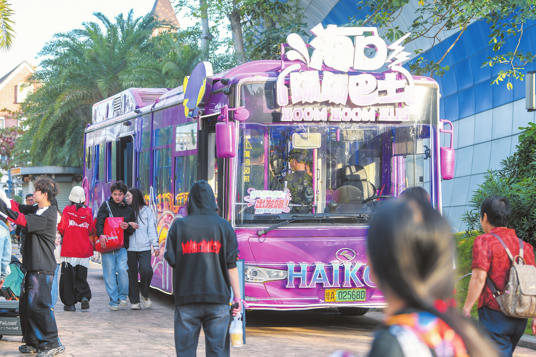11月28日,2025华晨宇火星演唱会海口站期间,歌迷登上蹦蹦巴士感受“移动音乐厅”。