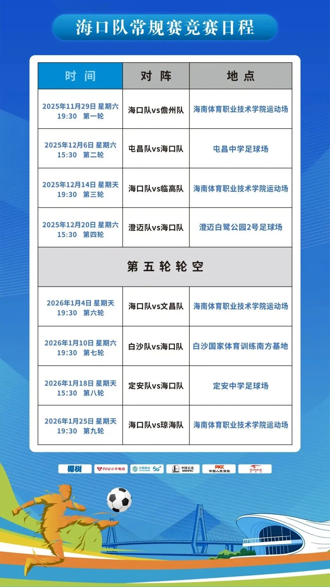 海口队将主场迎战临高队