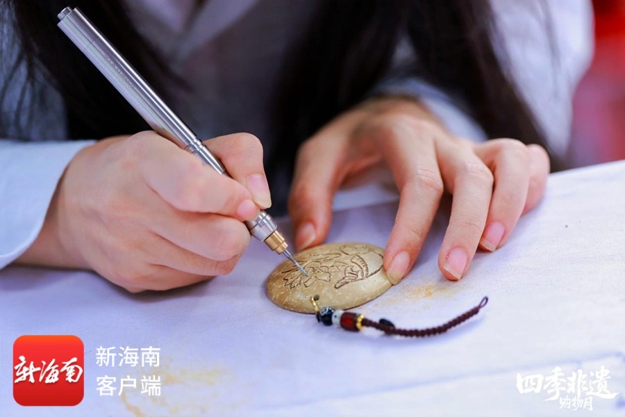 “四季非遗购物月”设椰雕体验环节。主办方供图