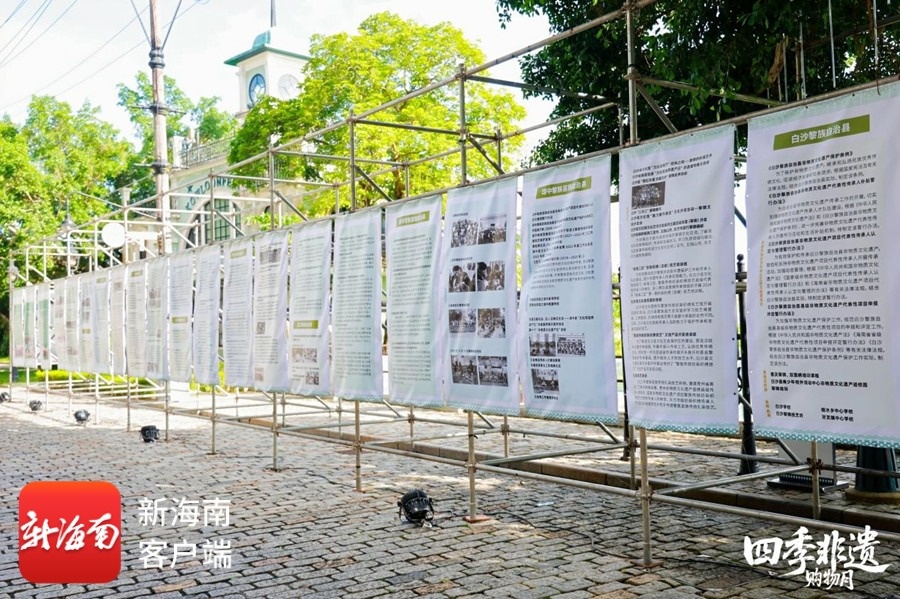 如果说购物月是热闹的市井欢歌,那么同期在电影公社南洋潮景区举办的黎锦技艺成就主题图片展,则是一场深沉而庄严的文化对话。展览以“黎华锦簇”为题,通过“百卉千华”“经纬技忆”等四个篇章,将黎锦从一根棉线到璀璨成衣的千年技艺史诗娓娓道来。