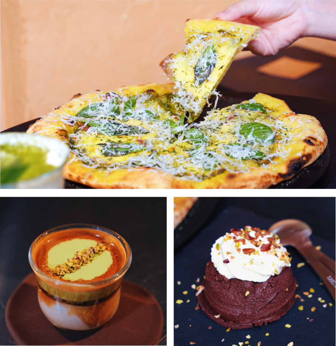 除了披萨,这里的甜品与饮品同样出色。随手点了一份巴斯克蛋糕,口感绵密醇厚,配上一杯特调咖啡,苦甜交织恰到好处。还有一款以“春夏秋冬”为灵感的四季特调茶饮,这次未能品尝,就留给下一次吧!或者,你们先去替我尝尝~