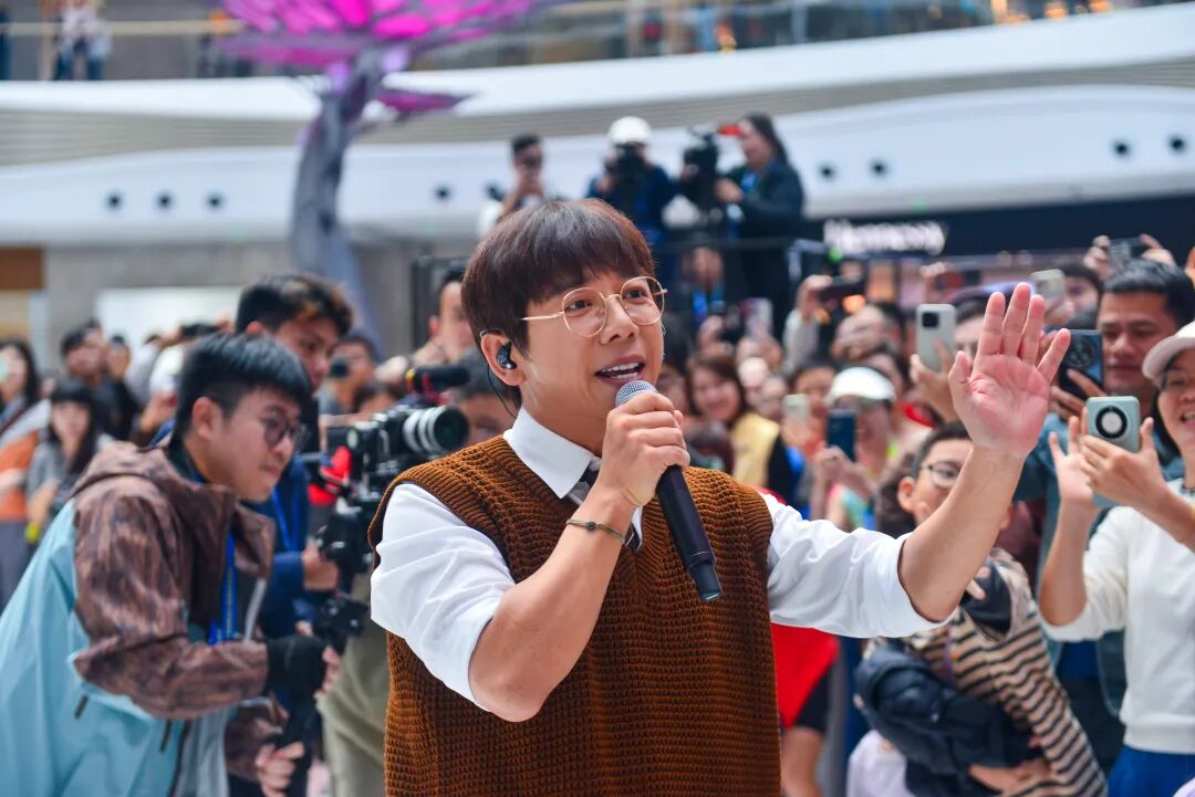 马拉松项目颁奖后,2025海口马拉松形象代言人、著名歌手胡海泉惊喜亮相,激情献唱《最美》《深呼吸》《奔跑》三首歌曲,用音乐点燃赛后狂欢!