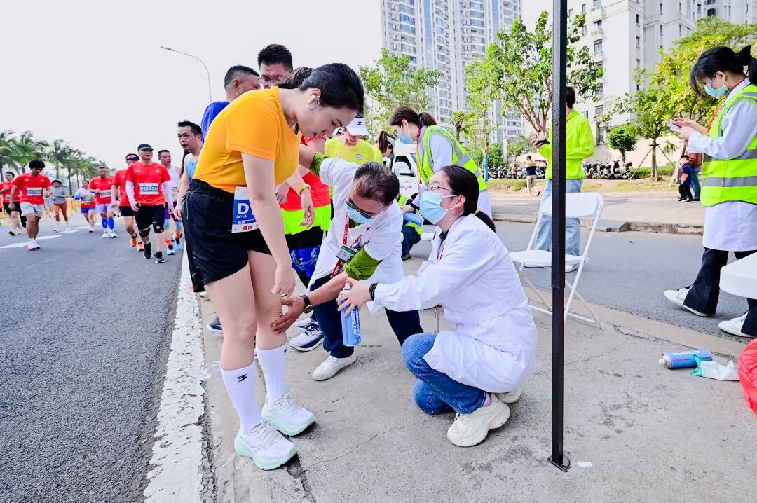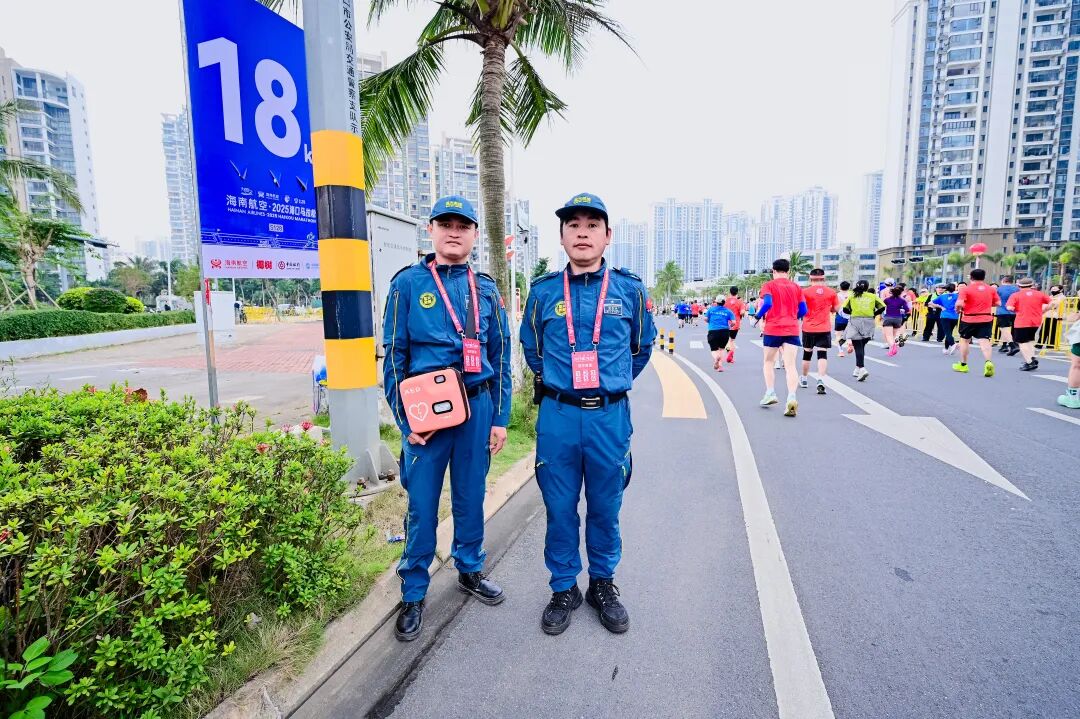赛事对标中国田径协会A类赛事标准,以专业精神贯穿赛事组织全环节。海南航空·2025海口马拉松构建起“移动+固定”全方位立体救援体系,配备99台AED、25辆救护车、48组骑行救护队及40名不同配速段的急救跑者,设置25个医疗站点、5家定点医院全力筑牢选手参赛安全防线。