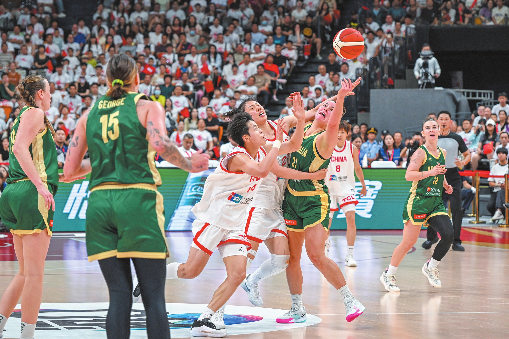 2025年7月6日晚,中国女篮在海口五源河体育馆迎战澳大利亚女篮。