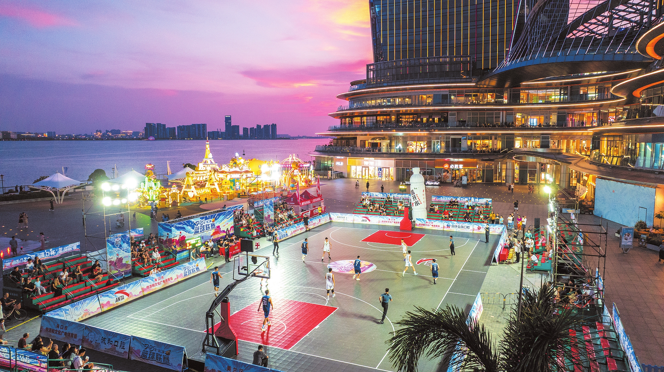 海口大力推进体育赛事“进景区、进街区、进商圈”工作,创新性地将“海口杯”篮球联赛与丰富多彩的节展、演艺活动相结合,成功打造出“观赛+潮玩+消费”的城市生活新场景,为海口“文体旅商展”融合发展注入新活力。