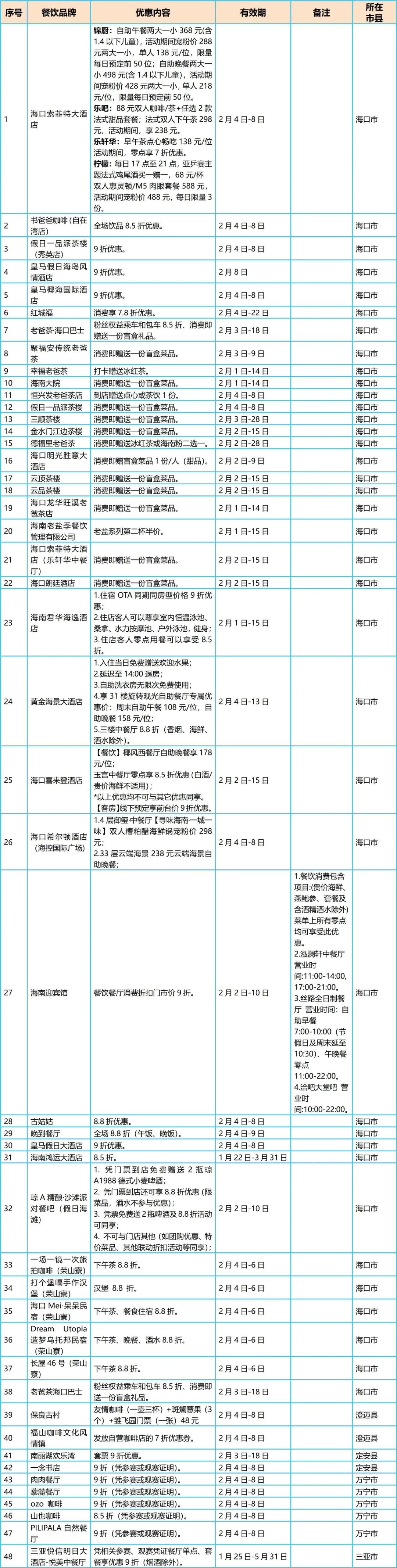 全岛范围内多家景区与旅行社:针对参赛选手、观众及游客推出免门票、折扣优惠等福利政策,如海南农垦万嘉果热带植物园、海南呀诺达雨林文化旅游区等,让游客在全省范围内都能感受到亚洲杯的热情与优惠。
