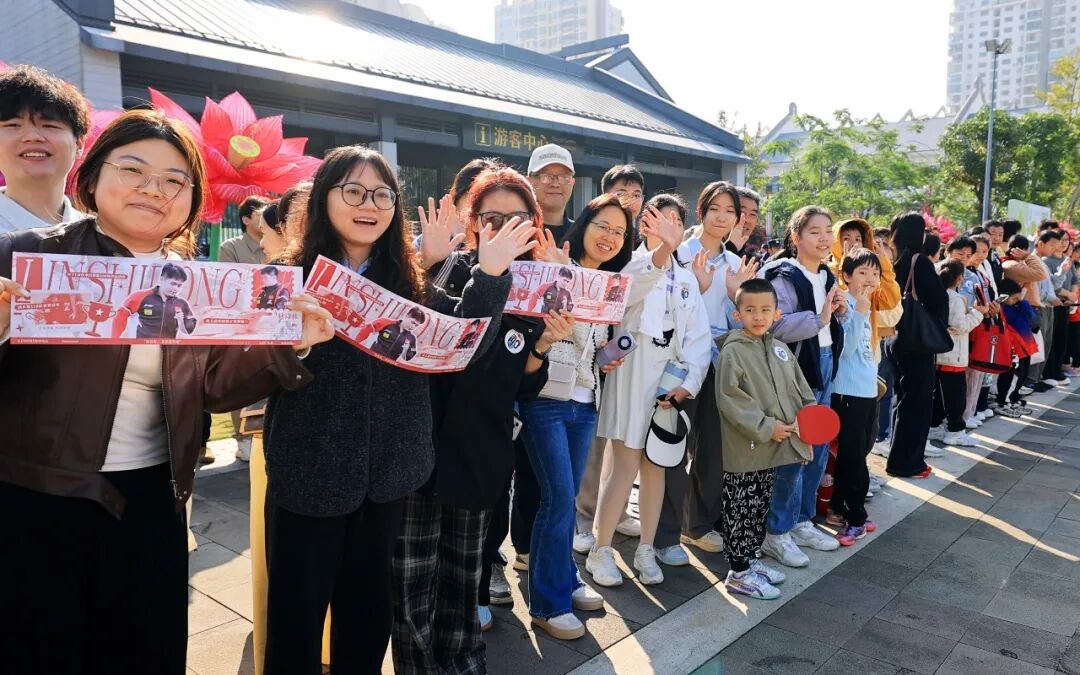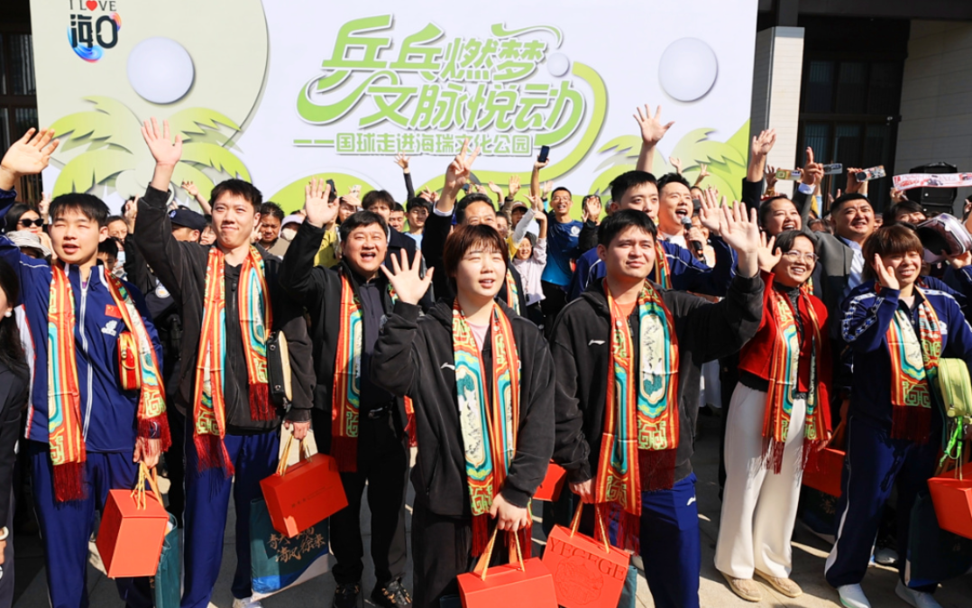 活动亦注重体育与文化的融合。在海瑞文化公园,林诗栋与众多市民游客挥拍互动,现场气氛热烈。