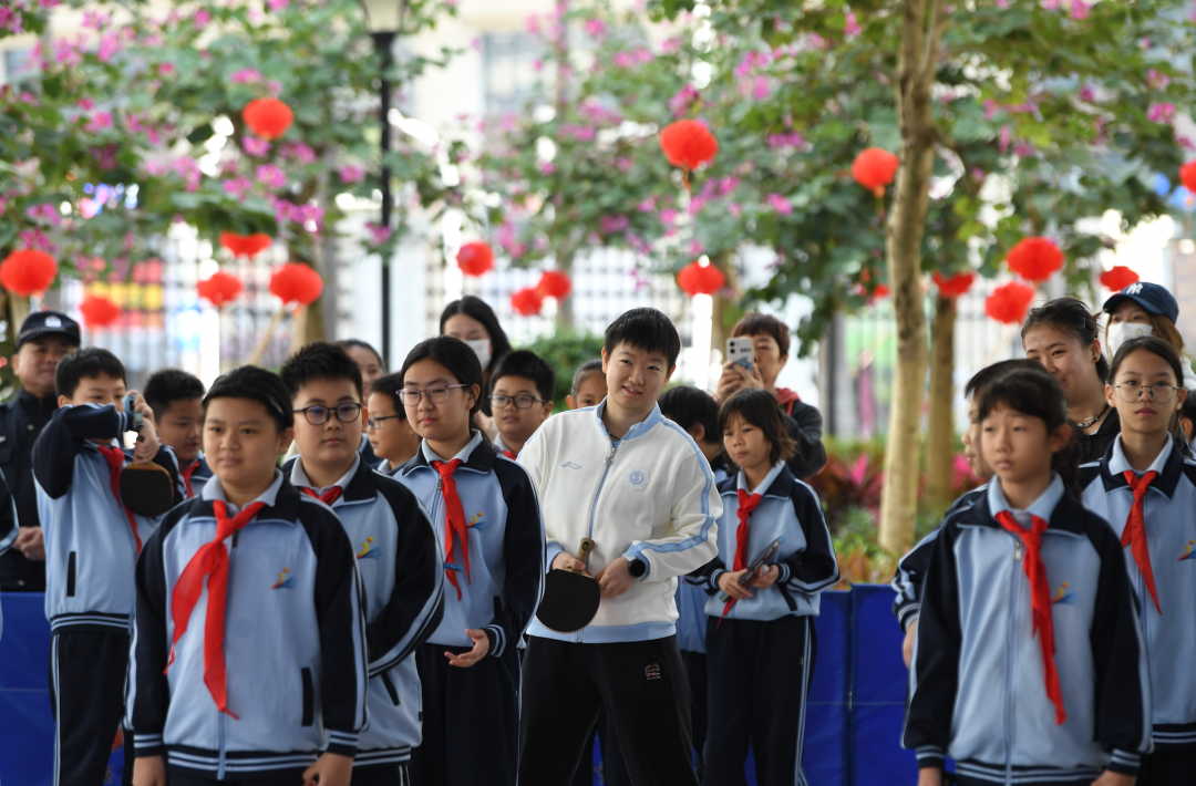 海口市金宇学校校乒队队员林紫桐感慨,在电视上看国乒队员拼搏的样子,如今能近距离交流学习,收获满满。校乒队教练周日明介绍,近年来乒乓球运动在海口校园广泛普及,此次国乒队员的到来,为孩子们提供了宝贵的学习机会,激励着他们刻苦训练、奋勇争先。
