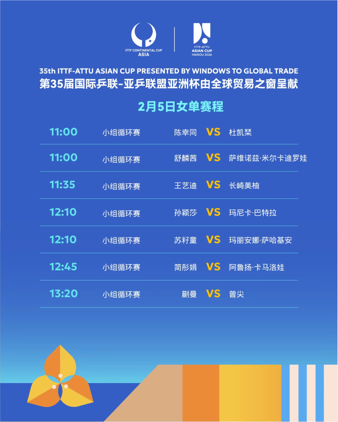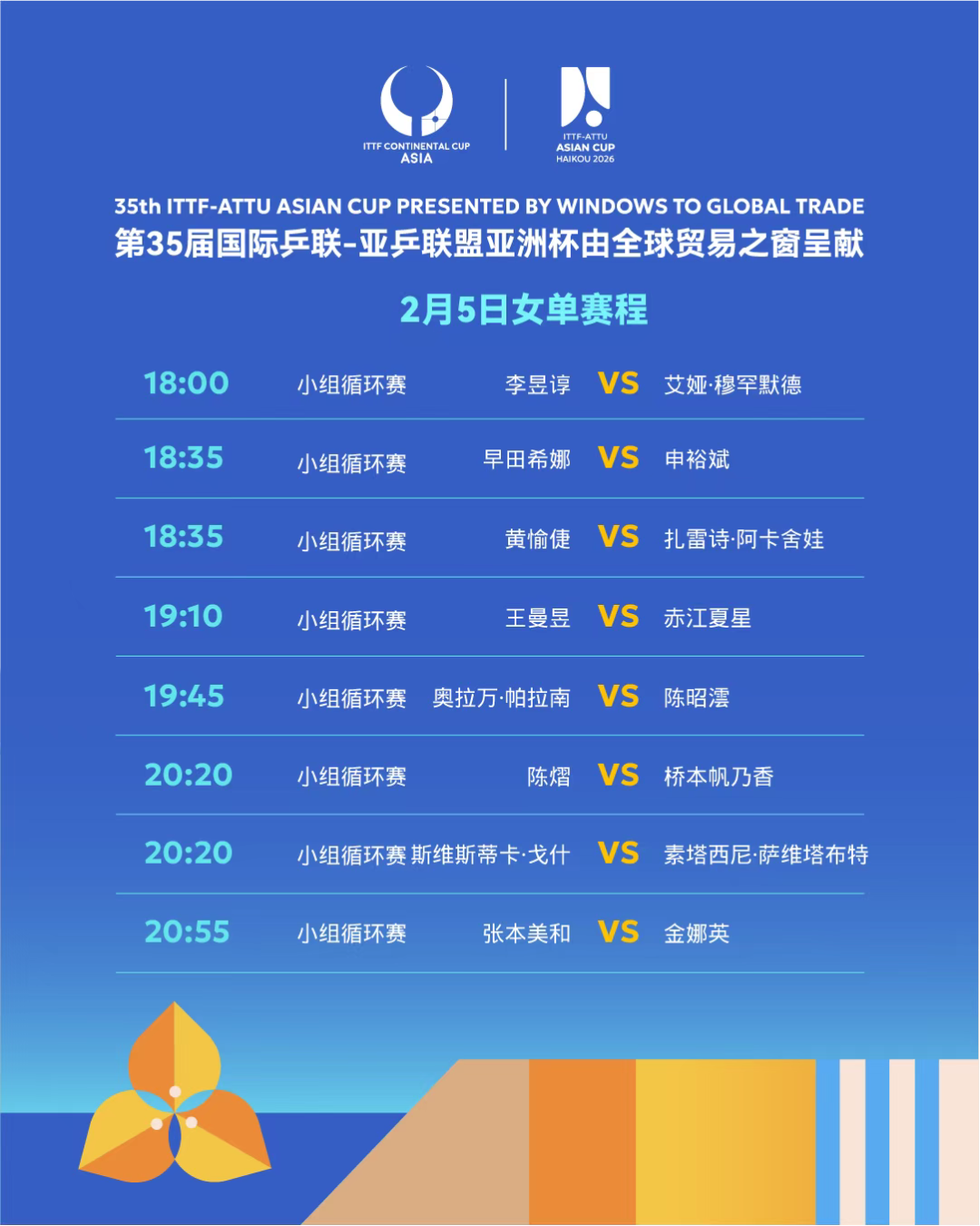 2月5日女单赛程