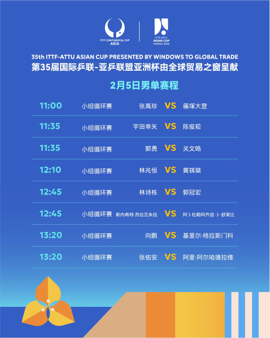 2月5日男单赛程