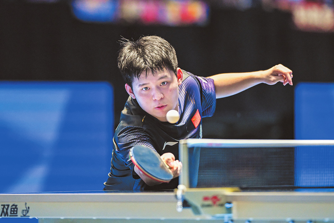 王楚钦在比赛中回球。本报记者 石中华 摄
