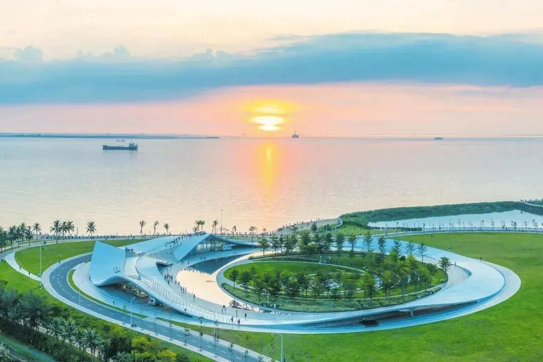 如果想在春节感受海口的“海之浪漫”,天空之山驿站绝对是首选。这座白色的弧形建筑,像一只展翅的海鸥,坐落在海边,不管是站在驿站的观景台远眺,还是坐在海边的草坪上发呆,都能看到蔚蓝的大海和远处的渔船,海风拂面,格外惬意。