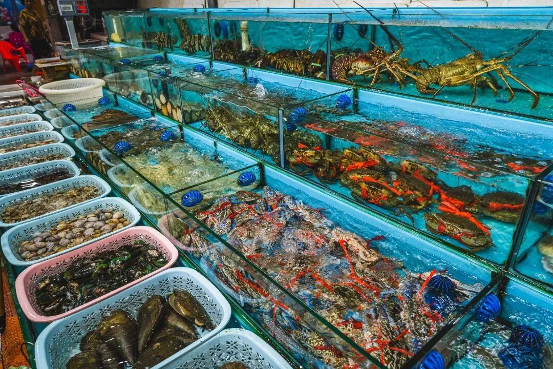 春节团圆,怎么能少了海鲜?新埠岛海鲜大世界是海口最大的海鲜市场之一,这里的海鲜种类繁多,龙虾、螃蟹、鲍鱼、生蚝……都是当天从海里捞上来的,鲜活十足。