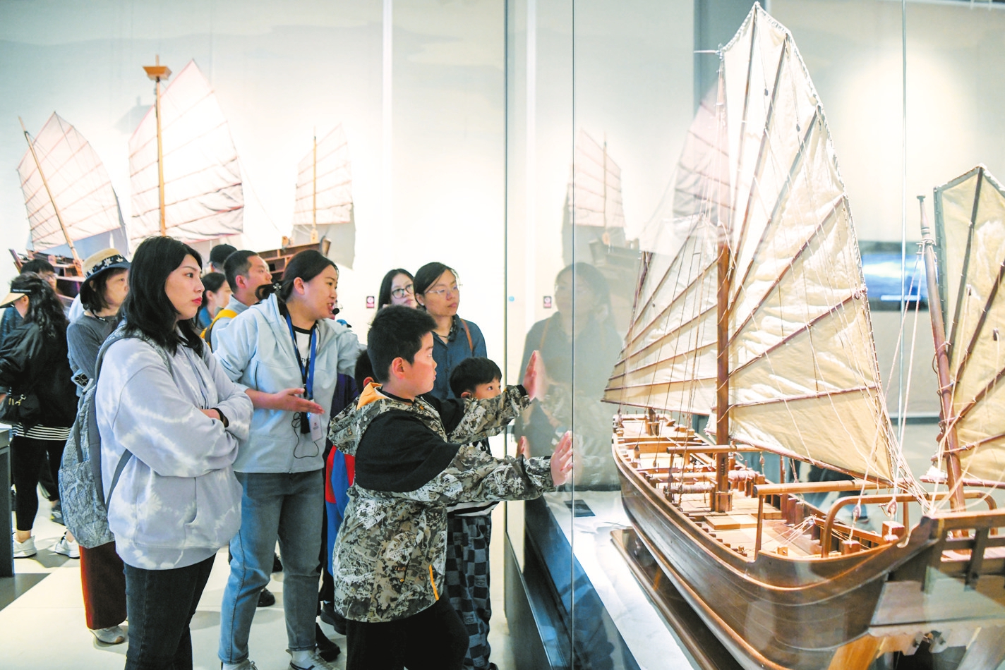 在海南省博物馆,市民游客赏文物、看展览,感受历史文化魅力。本报记者苏弼坤 实习生陈新锐 摄