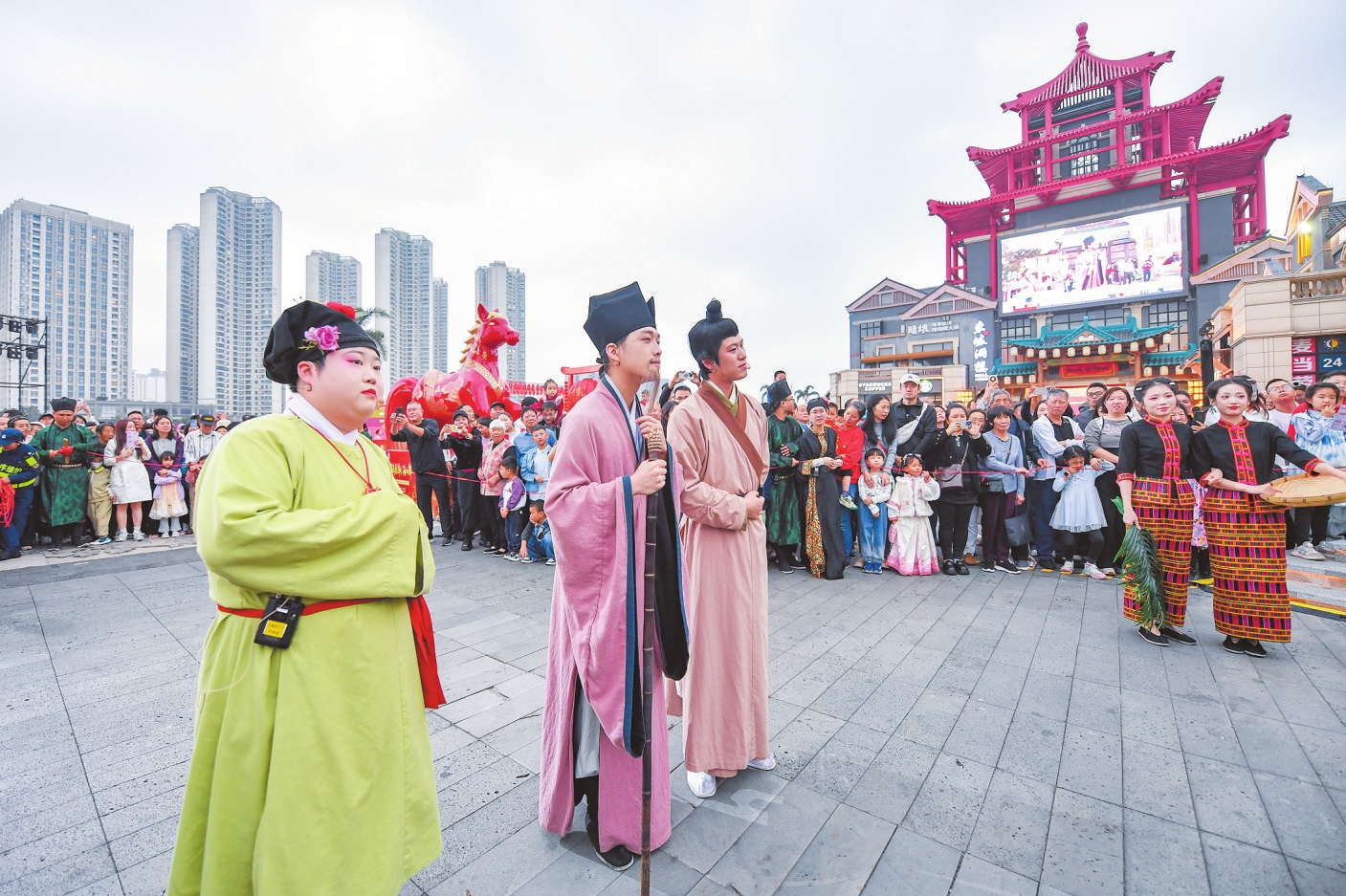 2026年海口市第十八届万春会现场的情景演出吸引了不少市民游客。本报记者苏弼坤 实习生陈新锐 摄