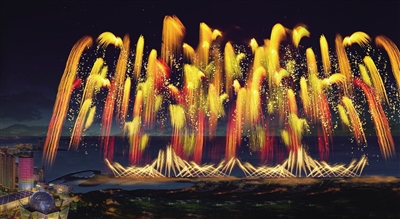 “千缕金沙”烟花。(效果图)