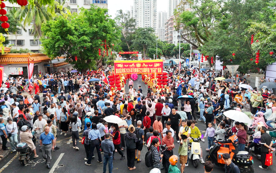 当天,2026府城元宵换花艺术周在琼山府城片区迎来高潮,万千市民游客沉浸式体验海南独有的换花浪漫。下午时分,府城街道办门前鼓乐齐鸣,“装马匹”巡游队伍正式出发。