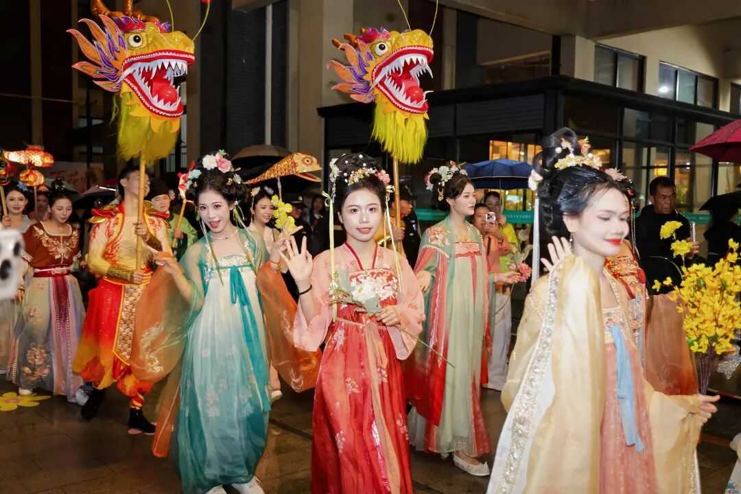 全城换花环节将节日气氛推向高潮。大街小巷,无数身着国风服饰的市民游客手持鲜花,互赠祝福。
